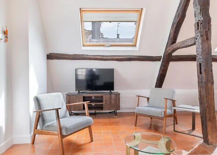 Renaissance Appartement van 100 m^2 ligt direct aan Chatelet - Les Halles treinstation en biedt snelle toegang tot Le Marais. Het 1-slaapkamer appartement verwelkomt gasten ook met voorzieningen zoals strijkfaciliteiten, evenals een wasmachine om hun verblijf comfortabeler te maken.